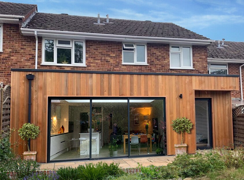 Single storey extensions displaying a range of materials
